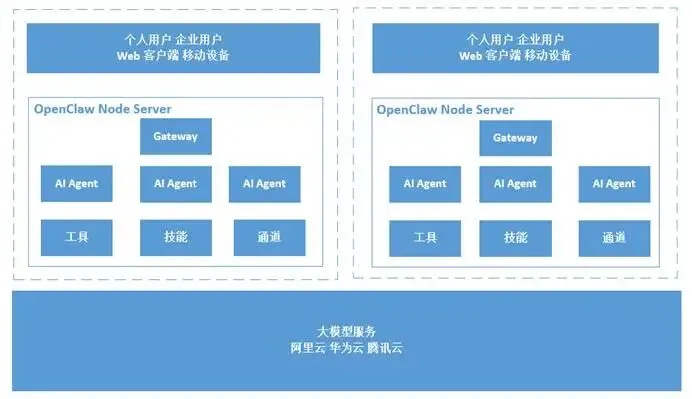 OpenClaw Node Server OpenClaw的服务器网关实例是运行在Node引擎中,以Http Server服务器实例的方式对外提供接口服务,一台服务器运行单实例的服务器网关,不同服务器中的服务器网关实例的用户以及AI Agents的本地缓存数据不同步。 |