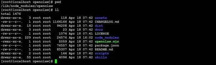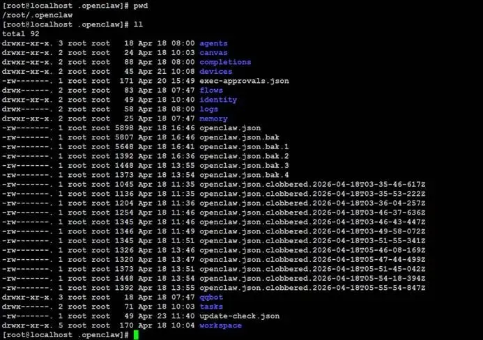 查看OpenClaw运行实例的部署目录结构: