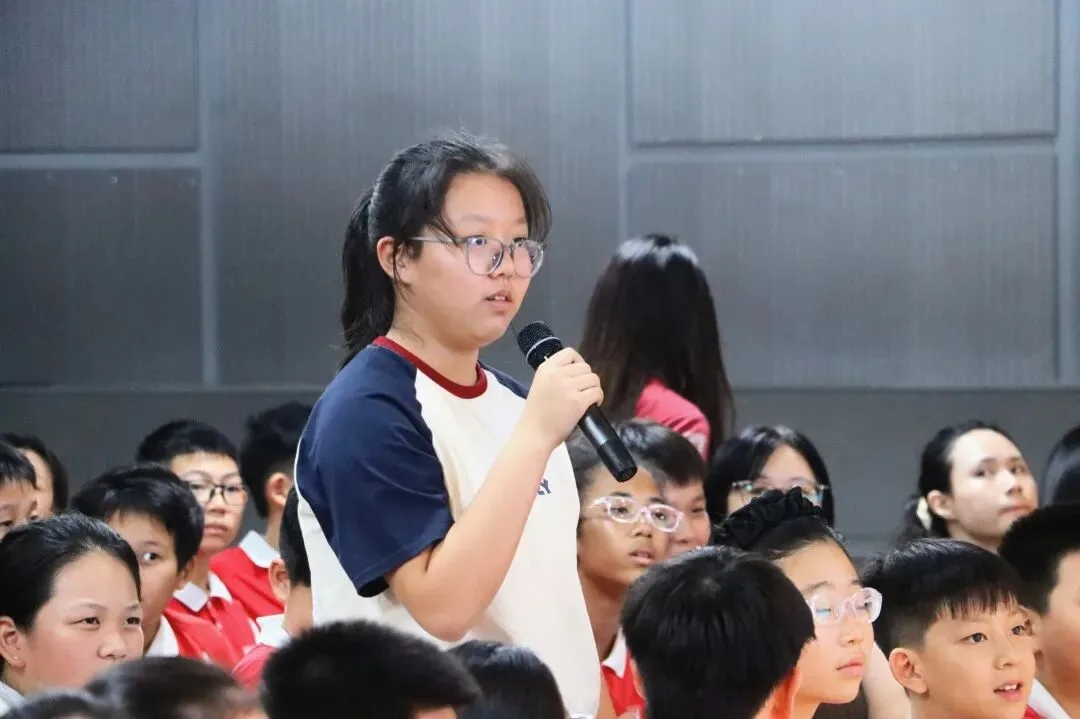 Outstanding student representatives from Grades 7 and 8 confidently took the stage. Sixth-grade students eagerly raised their hands and asked questions about middle school learning pace, club activities, habit development, and personal growth.