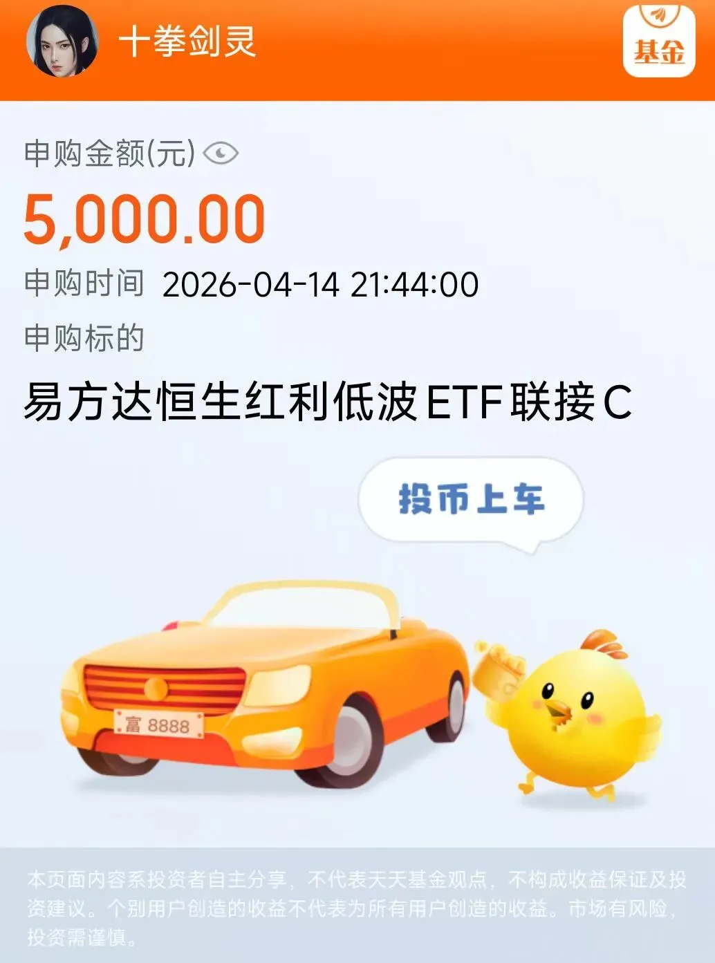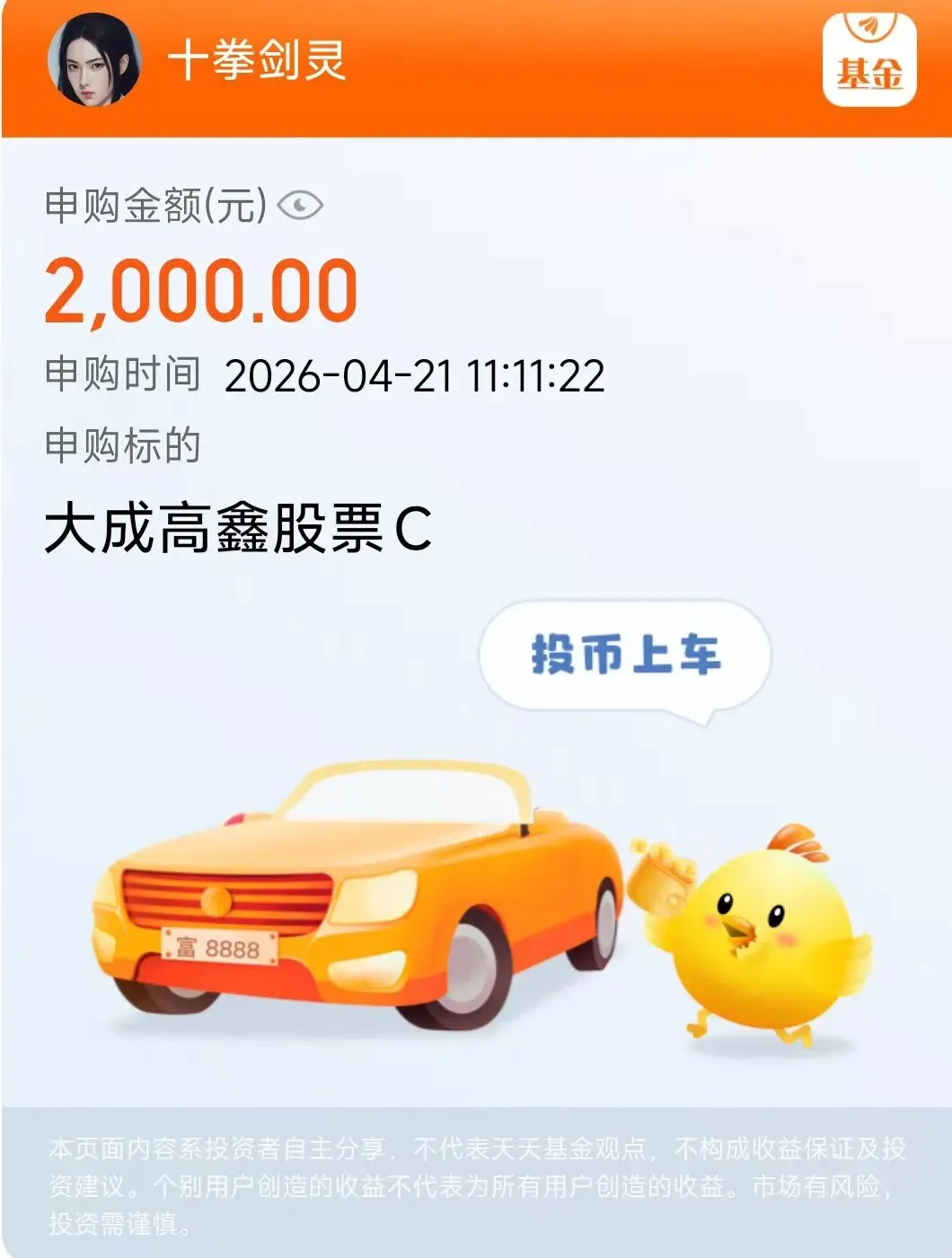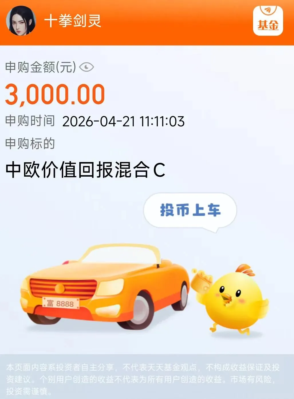 点击天天基金平台上的十拳剑灵的头像链接,进入主页就能看到十拳剑灵的公开实盘持仓。