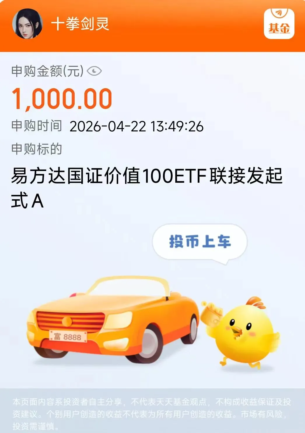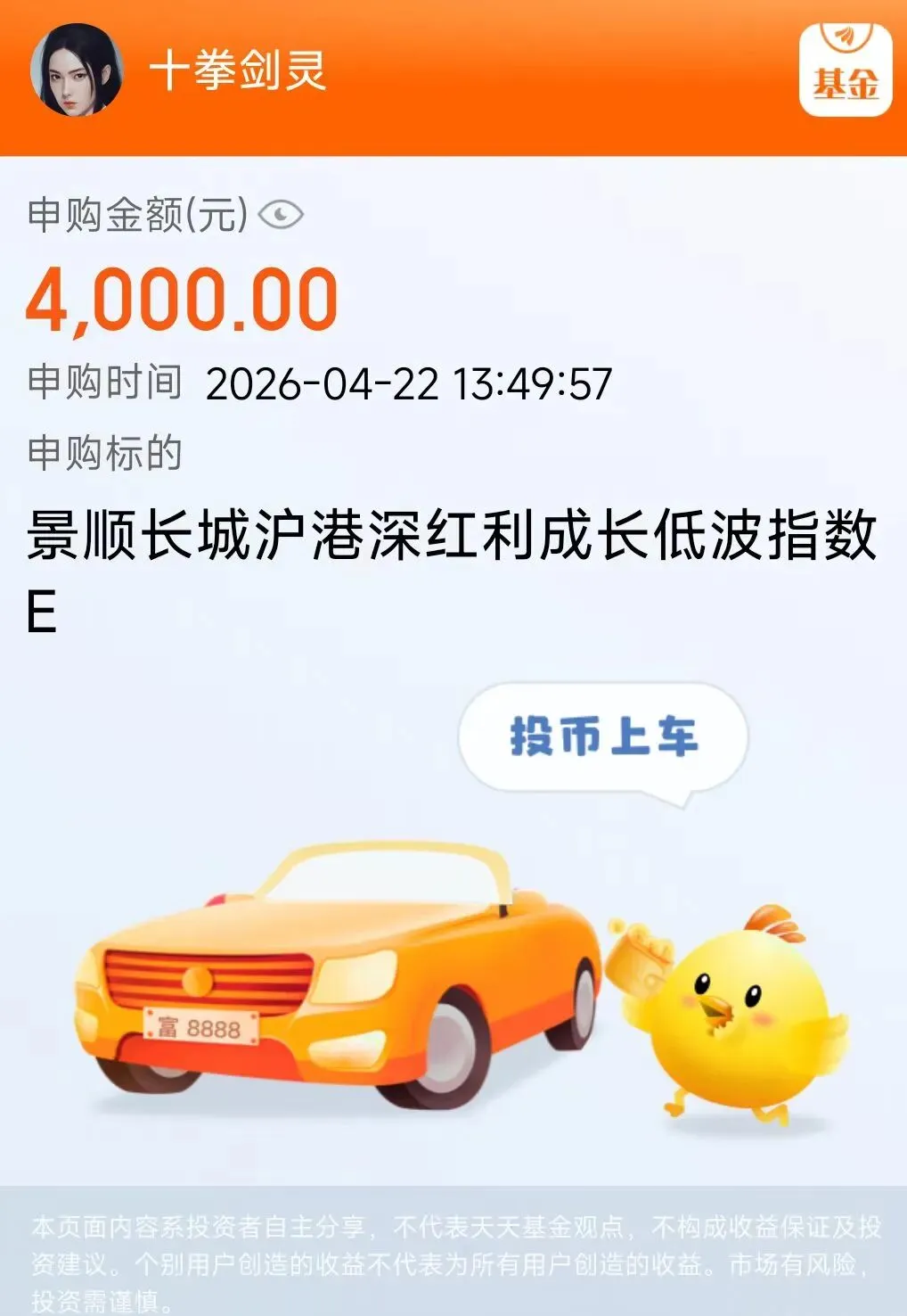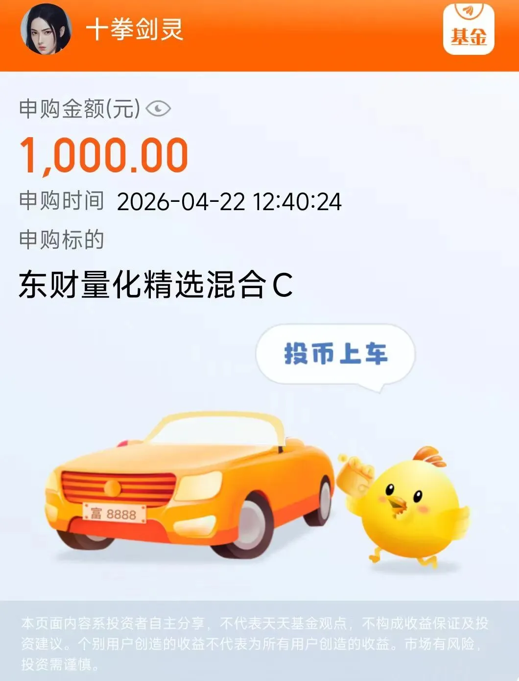 那止盈出来的钱去哪了?去补仓那些“磨人”的家伙。4月22号的操作记录里,十拳剑灵申购了几只基金: