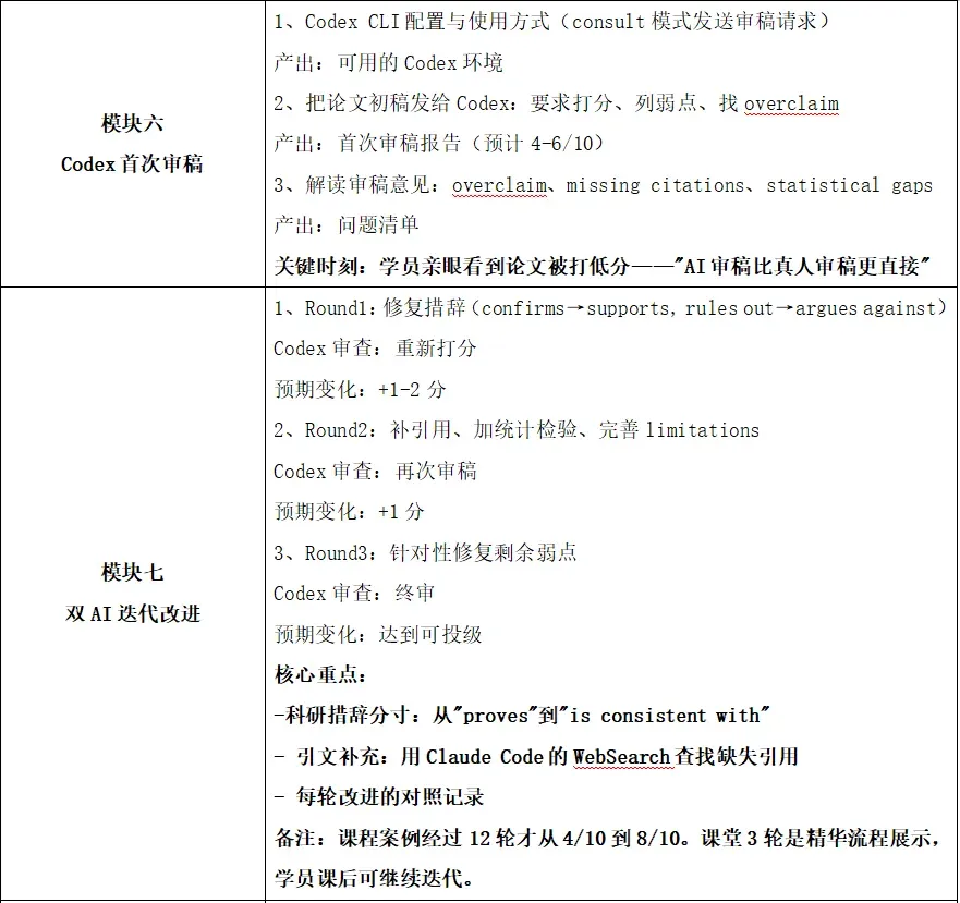 3.真实案例:讲师以自己论文为例,展示Codex审稿从4/10逐步改进到8/10的完整轨迹(12轮迭代,课堂展示精华3轮)。