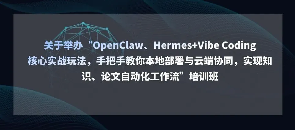 🌟 课程三:关于举办“OpenClaw、Hermes+Vibe Coding核心实战玩法,手把手教你本地部署与云端协同,实现知识、论文自动化工作流”培训班