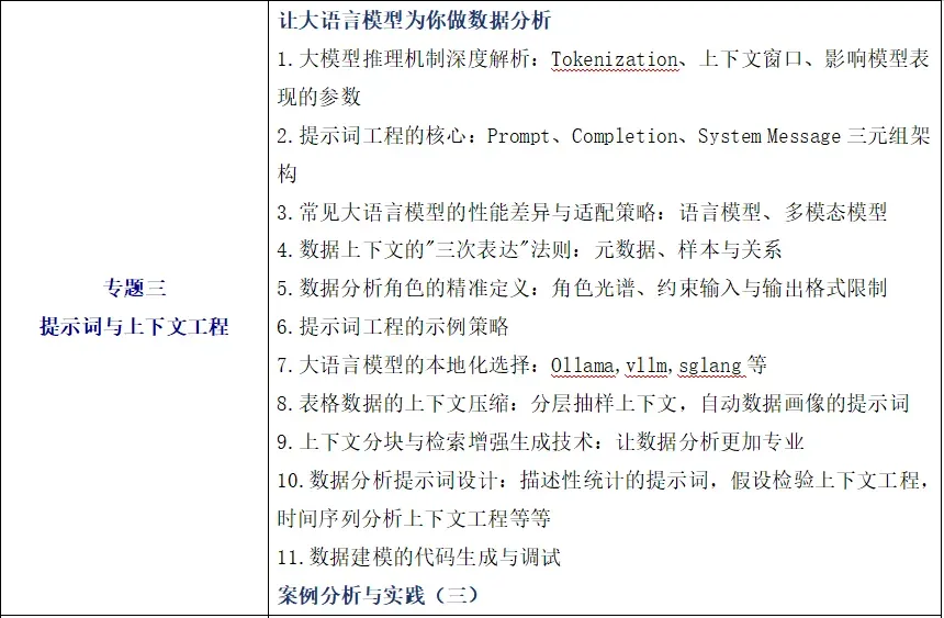 告别繁琐的重复编码。课程深度教授Vibe Coding(氛围编程)——通过自然语言与AI协同编程,实现”零门槛”快速原型开发;掌握上下文工程与RAG技术,让大模型精准理解您的领域数据,自动生成可执行的分析代码、SQL查询与科研图表,将数据分析效率提升十倍。