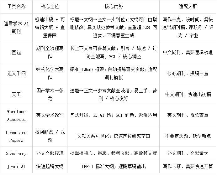 实测 8 款工具后我真心推荐:逢君学术 AI 期刊论文工具https://www.fengjunxueshu.com/journalThesis?lz=aiqklw323-gzh—— 标题输进去,大纲可自由改,3–30 分钟直接出完整论文,参考文献真实规范,还有查重超 20% 可退款的保障。不管是学生毕业、老师评职称、还是评奖评优,用它都能轻松写期刊,早日录用、一路顺畅!