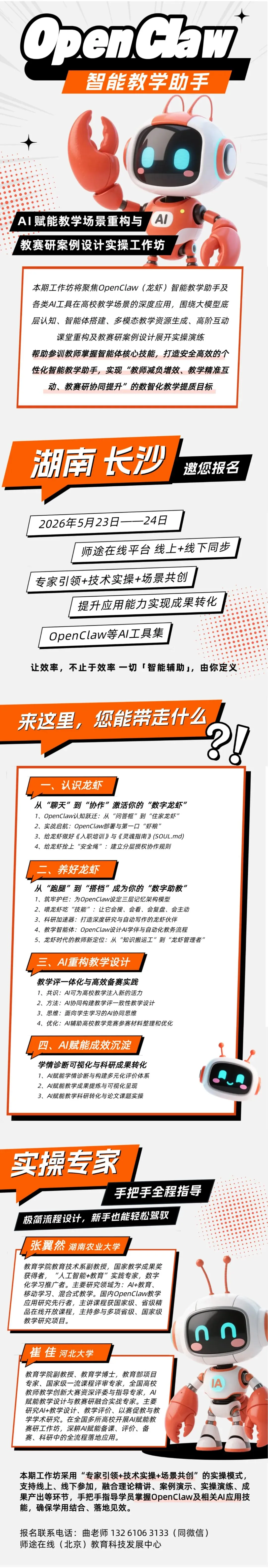 【5月23日 · 长沙】OpenClaw智能助手实操工作坊:AI赋能教学、比赛、评价、科研全场景案例设计