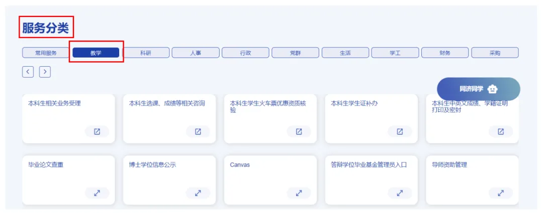 浏览器访问一网通办(all.tongji.edu.cn),通过统一身份认证登录。