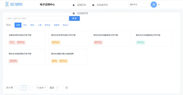 搜索框中搜索“学生电子证明文件”,点击进入。