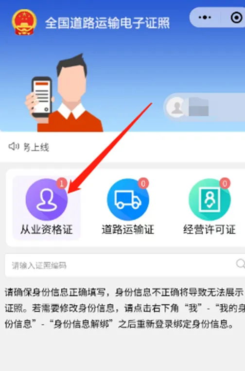 第一步:扫描二维码或关注微信小程序“全国道路运输电子证照”。