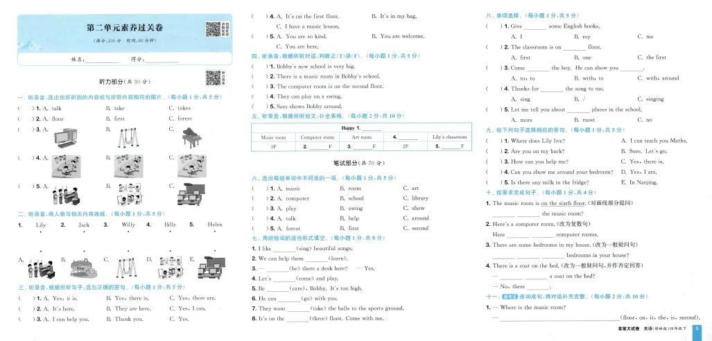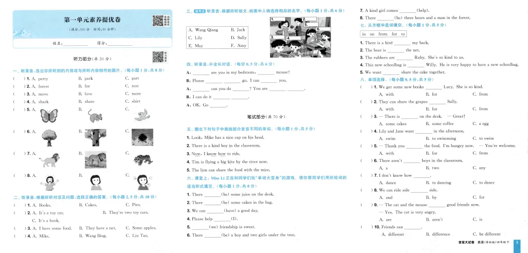 译林版英语3-6年级下册《通成学典非常大试卷》含答案 单元卷月考卷期中期末卷 打印