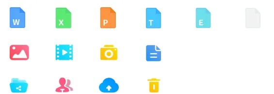 Icon体系: Tab bar 采用粗线条线性图标,视觉感沉稳可靠,传递出优云对数据安全性的承诺。在文件列表设计上,我们创新地在图标中加入文档类型首字母(如W、E、P),极大降低了用户的辨识成本。