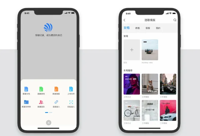 全能编辑引擎: 支持新建文档、表格、简报及文件上传,甚至支持通过链接直接加入团队。