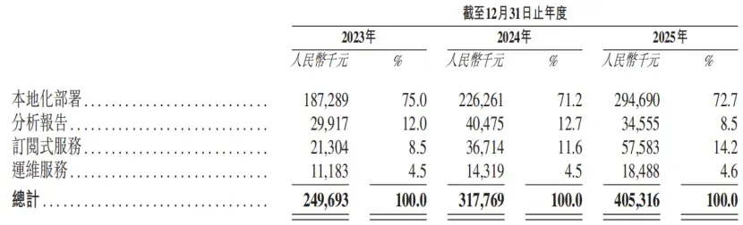 按交付方式来看,本地化部署是主要的交付方式,报告期内的收入占比超过了70%。