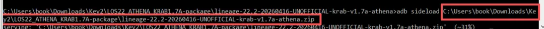 其余的,跟着图2教程里的Install Guide for LineageOS 22.2 UNOFFICAL走就行了,需要的基本知识就是怎么用windows的CMD,在CMD里怎么切换路径,怎么获取windows内某个文件的具体路径,因为输入最后刷机命令的时候需要输入完整的刷机img文件的路径,如下图红框: