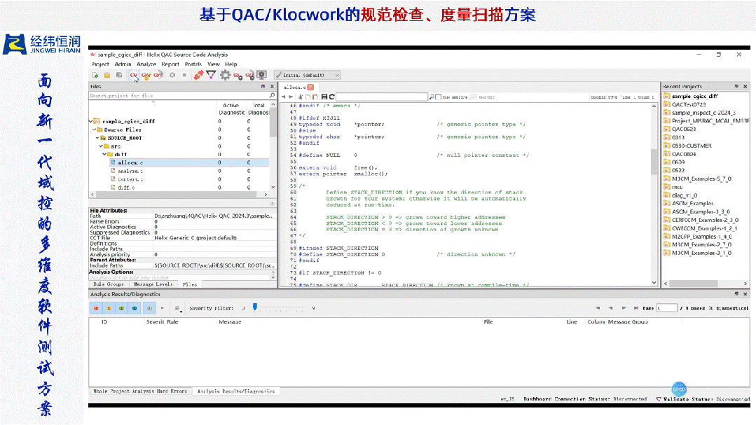 基于Helix QAC/Klocwork等工具,借助规则规范检查、运行时错误检测、质量度量元检查、命名规范检测等方法对代码开展静态测试,提升软件准确性及可靠性