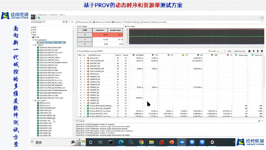 基于PROV工具/自研插件等在PIL/HIL/实车环境下监控控制器的性能表现,测试软件的堆栈、执行时间、响应时间、CPU负载等指标