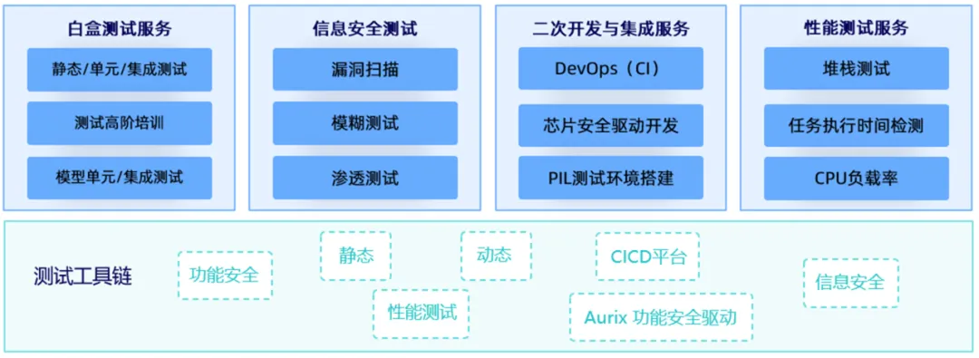 根据功能安全/信息安全/ASPICE对静态测试、单元测试、集成测试、性能测试的要求,针对不同的用户经纬恒润提供定制化的咨询服务,主要包括:测试过程能力建设、测试技术咨询、测试工具链建设、第三方测试服务等。