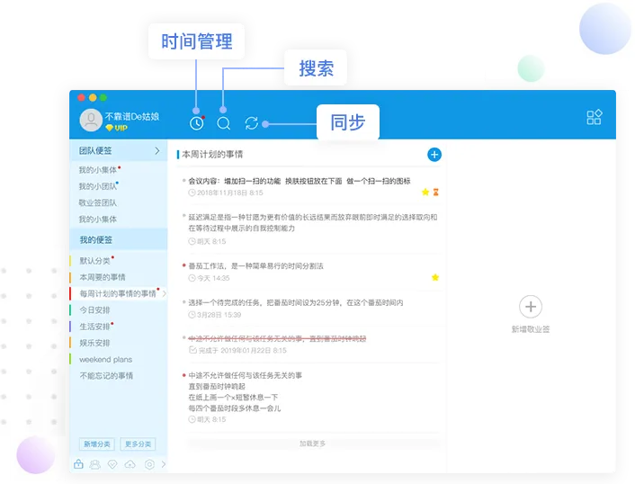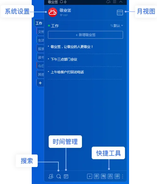 敬业签除了具备传统便签的记录、查看功能外,还增加了云服务功能,为便签提供云同步、云存储。