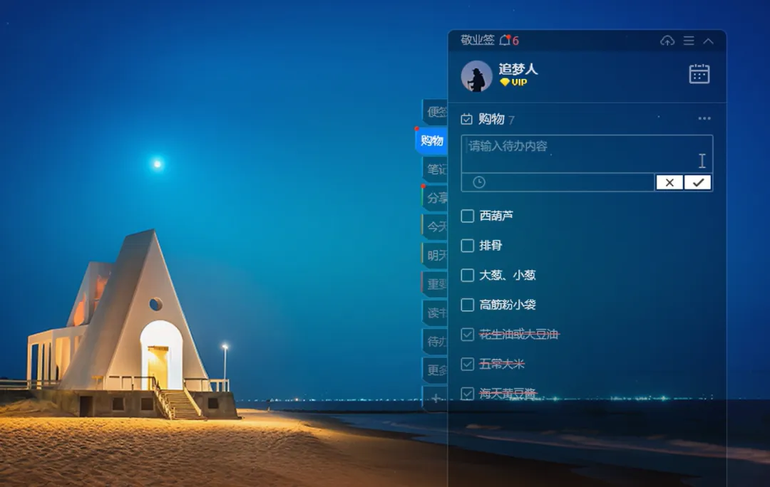 透明桌面便签:Windows端支持背景透明,能放在桌面任意位置,不遮挡工作内容,方便随时查看。