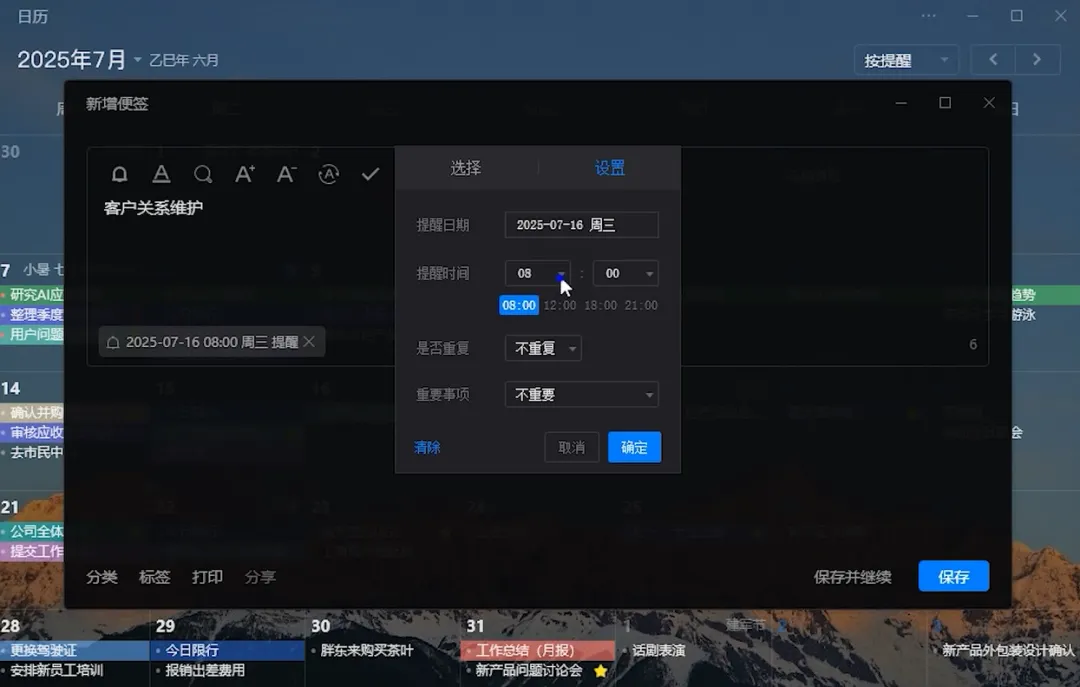强大的提醒系统:农历、间隔提醒等高级功能,彻底告别遗忘