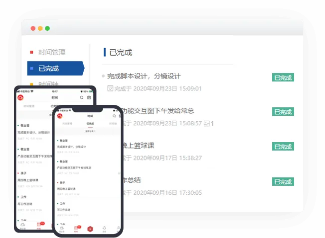 已完成列表:标记完成的历史记录集合,方便复盘总结。