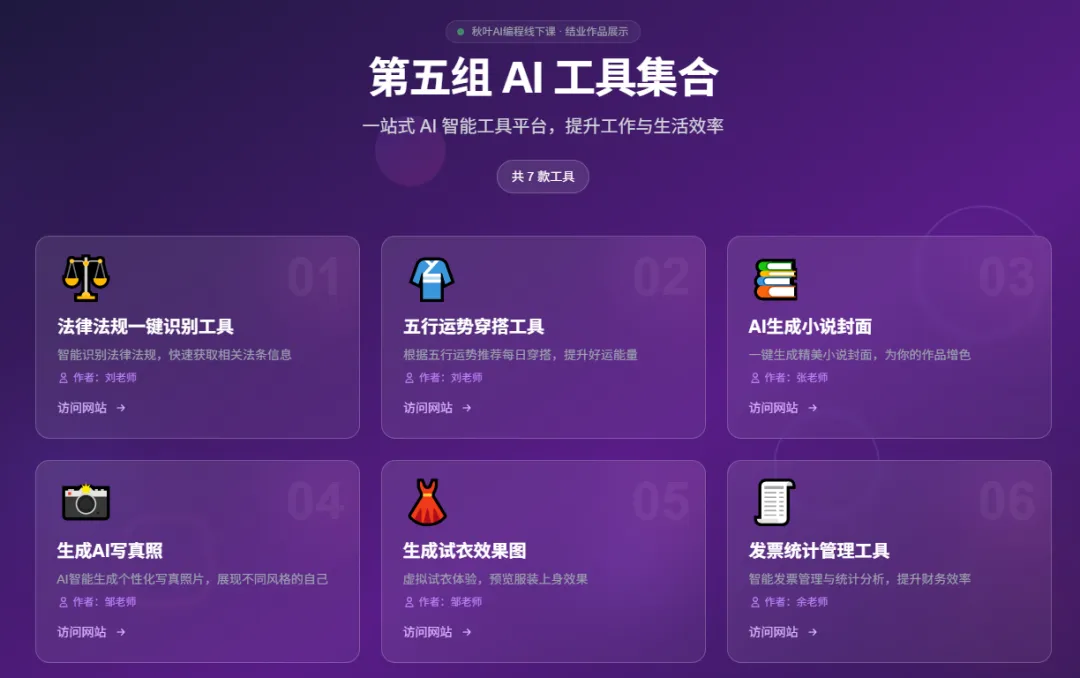 刘老师,本职是认证审核员,每天要查大量法律法规,翻文件翻到头秃。来到课堂后,他做了一个法律法规一键识别工具,输入关键词几秒钟出结果。他发现AI编程居然这么简单,脑洞一下打开了,转头又搞了个五行运势穿搭工具。一个严肃,一个离谱,现场出产品的效率就是这么高!