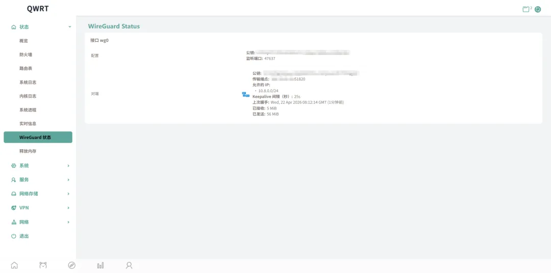 wireguard是个很好用的VPN,我的飞牛NAS、威联通,办公电脑和家里的两个笔记本,包括VPS都连上了,把所有设备接入一个局域网,操作起来很便利,部署可以参考之前的这篇文章:wg-easy快速wireguard组网,实现无公网环境下访问飞牛NAS!。说来也怪,我这qwrt上可以安装wg但是没有操作的地方,它的指令我也不熟啊,还是让龙虾来吧。
