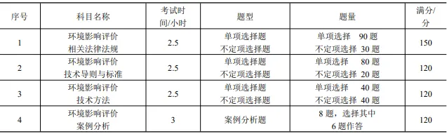 《环境影响评价相关法律法规》《环境影响评价技术导则与标准》《环境影响评价技术方法》3个科目试题的题型为单项选择题和不定项选择题。
