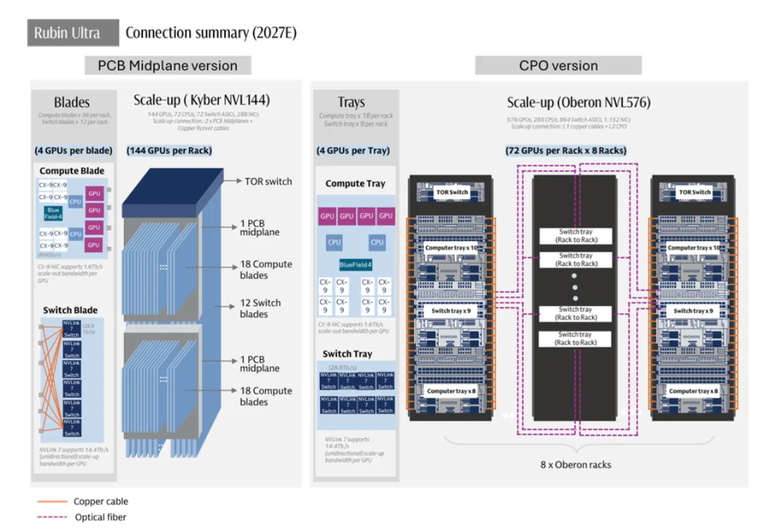图:Nvidia Rubin Ultra AI 机柜网络概览(2027年预测)