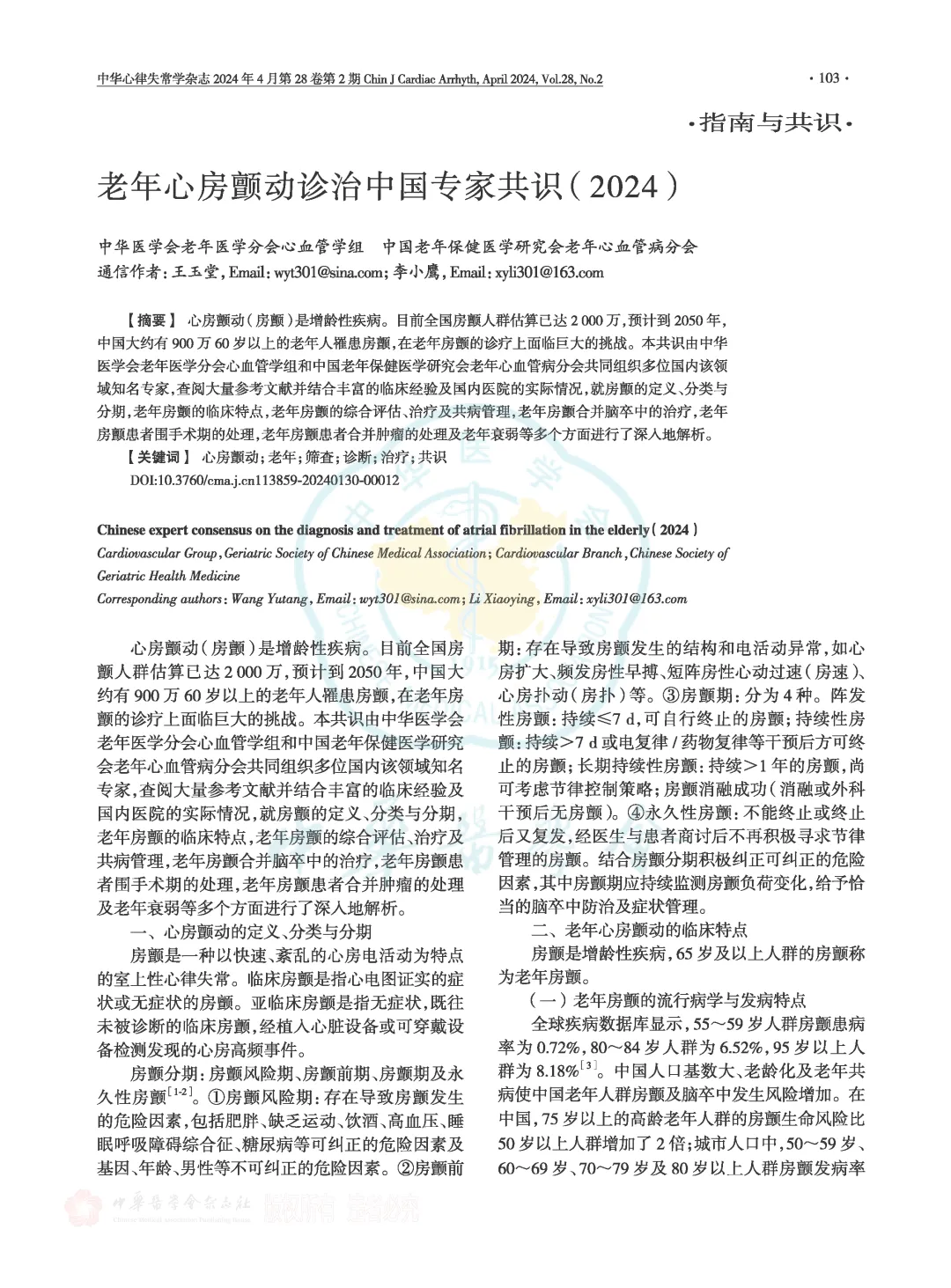 全文下载—《老年心房颤动诊治中国专家共识(2024)》 老年心房颤动诊治中国专家共识(2024) 原文下载移步文末链接! 附件下载:老年心房颤动诊治中国专家共识2024.pdf 点击关注!持续获得有用的知识分享!