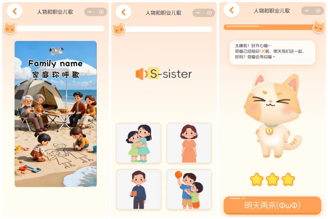 ✅ 优点:奇喵陪伴——一个免费的微信小程序,打开微信就能用,每天10分钟自动结束,不伤眼也不纠缠;没有广告,英文儿歌和单词互动做得刚好,老人也能轻松带孩子玩。
