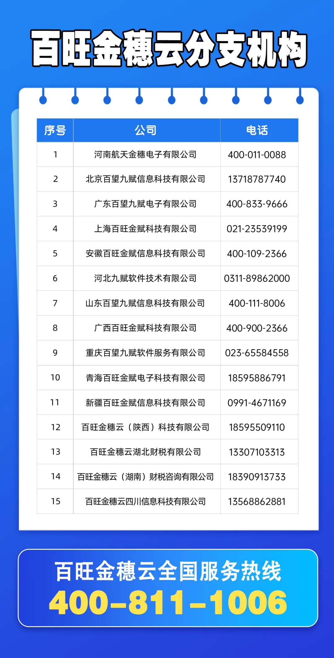 百旺金穗云信息科技有限公司是整合了百旺(望)税控服务体系与河南航天金穗相关企业的优质资源组建而成的高科技集团性平台公司。自1996年承担国家金税工程推广以来,公司历经近三十年发展,已成长为覆盖全国25个省市的智慧财税领军企业。自主研发的智能财税、慧代账等系列产品深度融合云计算、大数据及人工智能技术,持续为海量企业客户提供专业、高效的智慧财税服务。