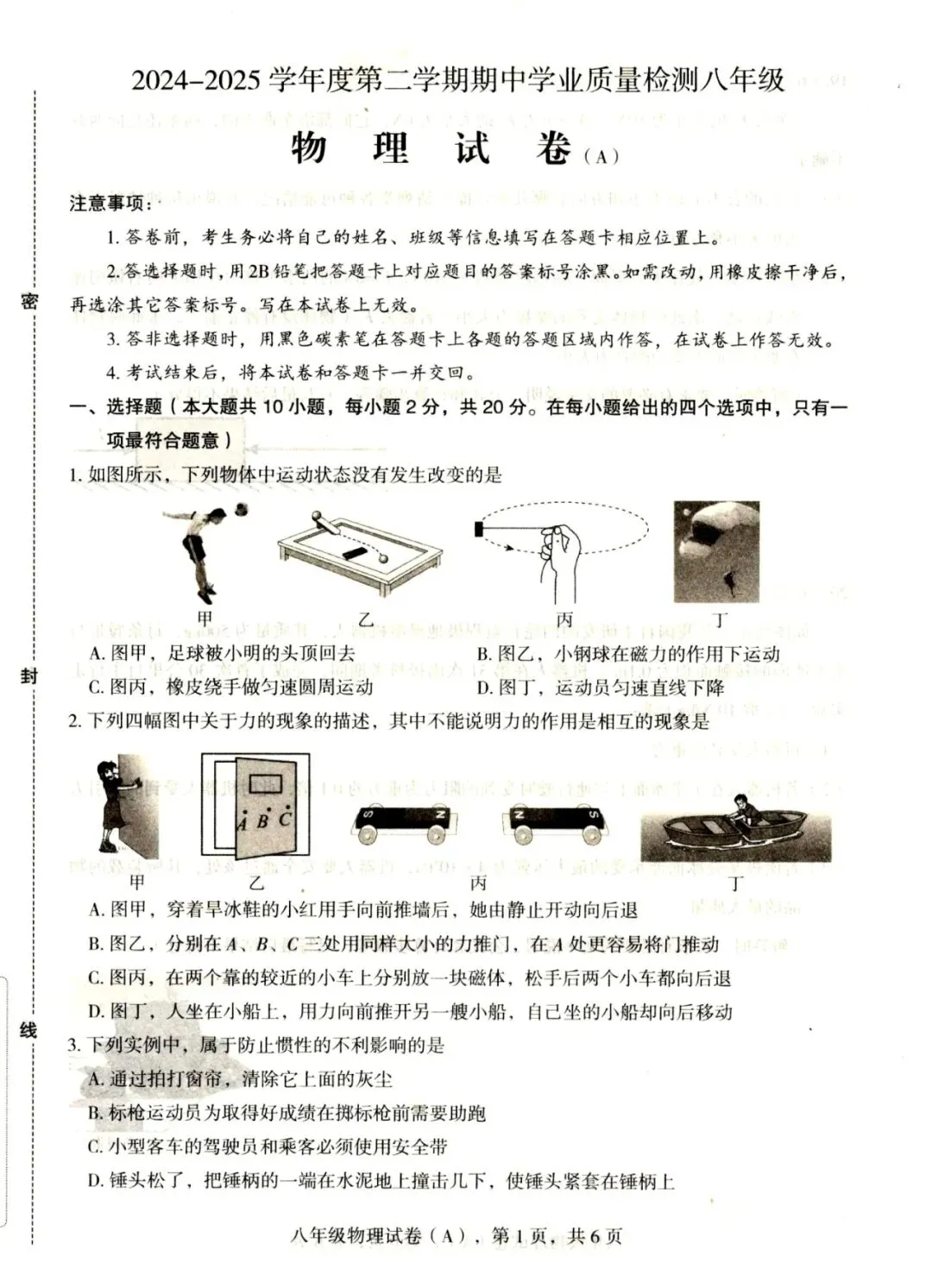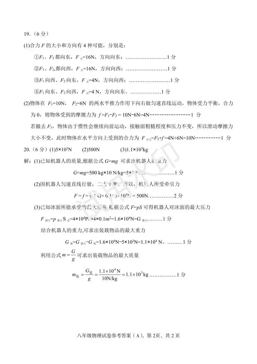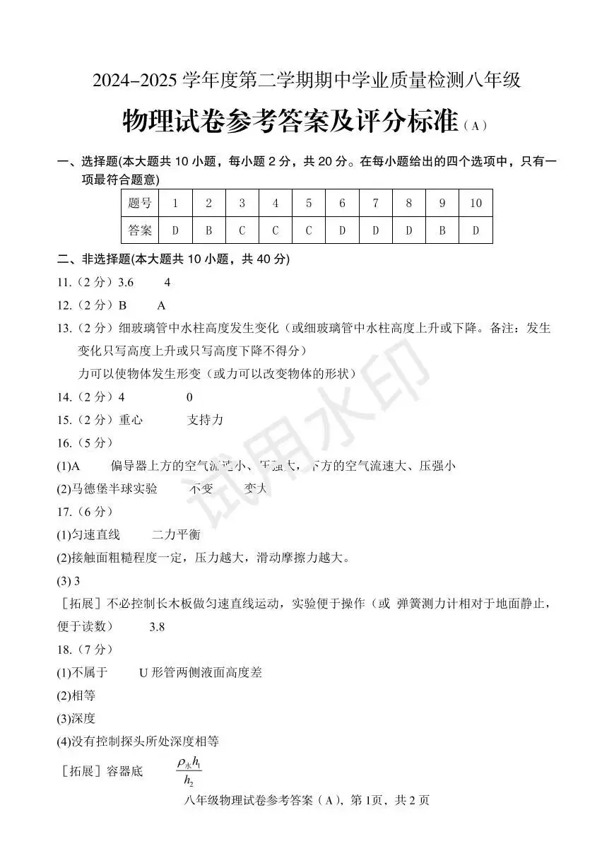 (高清,可打印)2025年石家庄元氏县八年级第二学期期中质量检测物理试卷(含答案)