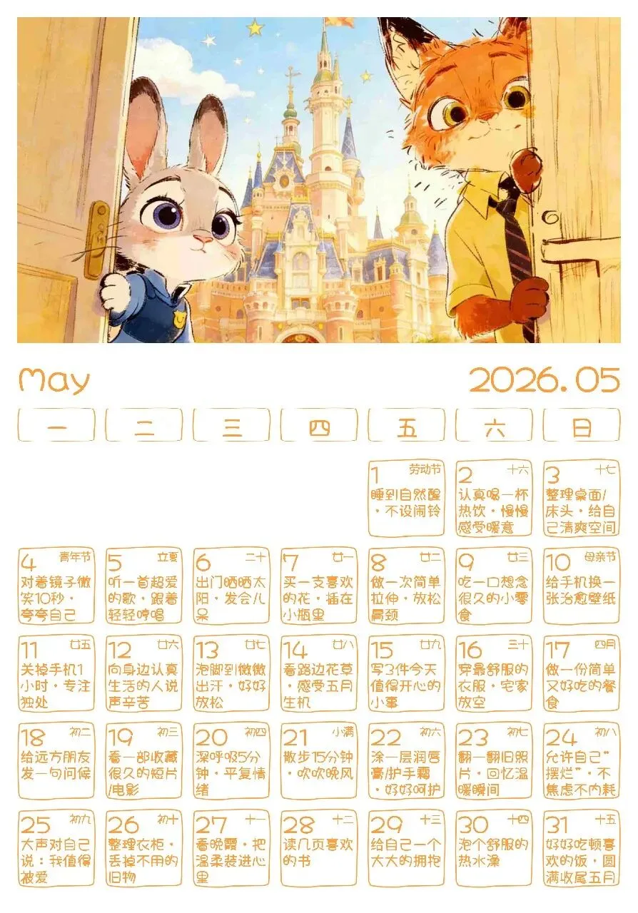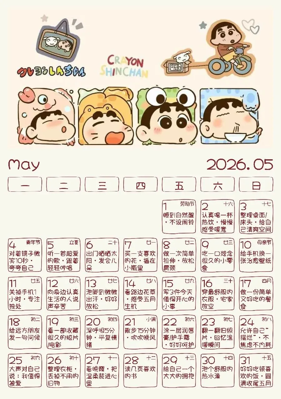 五月爱自己日历|每天一件幸福小事(可打印)