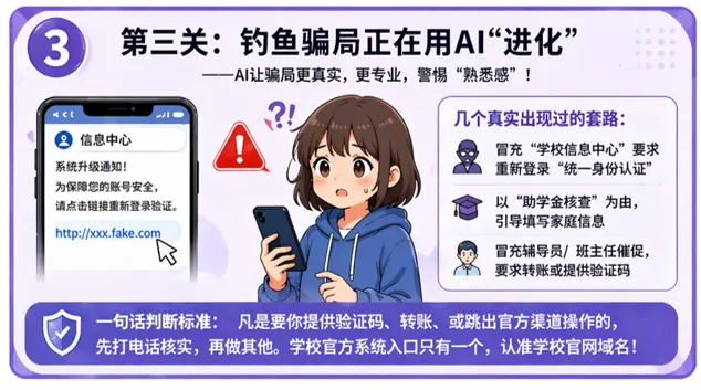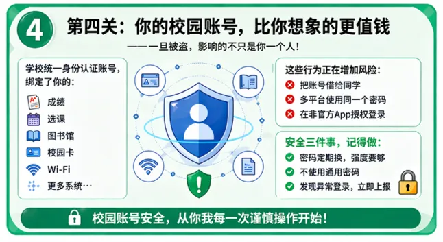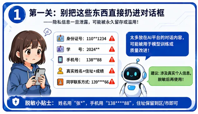 数字生存指南|AI时代的4个信息安全坑,你可能每天都在踩 “用AI查一下。” 这句话,你今天说了几次? 从“百度一下”到“问问AI”,写作业、改论文、做PPT,AI已经成了你的“第二大脑”。 但很多人没意识到一件事:你在用AI的同时,也在“交出自己”。 你以为只是问问题,实际上可能在暴露——你的身份信息、学习情况、甚至账号权限。 这4个易踩的坑,你可能已经中过 AI很方便, 但它不会替你承担风险。 在AI时代, 信息安全不是“技术问题”, 而是你每天的使用习惯。 每一次复制粘贴, 每一次“帮个忙登录一下”, 都可能成为风险的入口。 安全这波,得自己守家,别被老六偷了家。 编辑 | 金婷婷 审核 | 朱柠熙