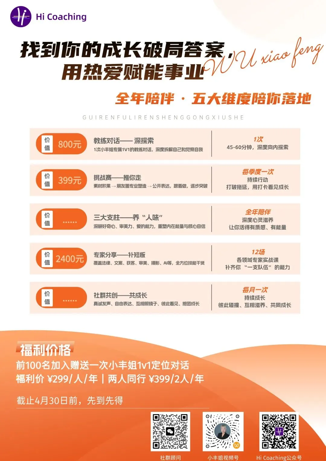 年度社群699/人,现在报名仅需299/人/年,如果你有一个志同道合的搭子,还能以399/两人/年的超值价加入。
