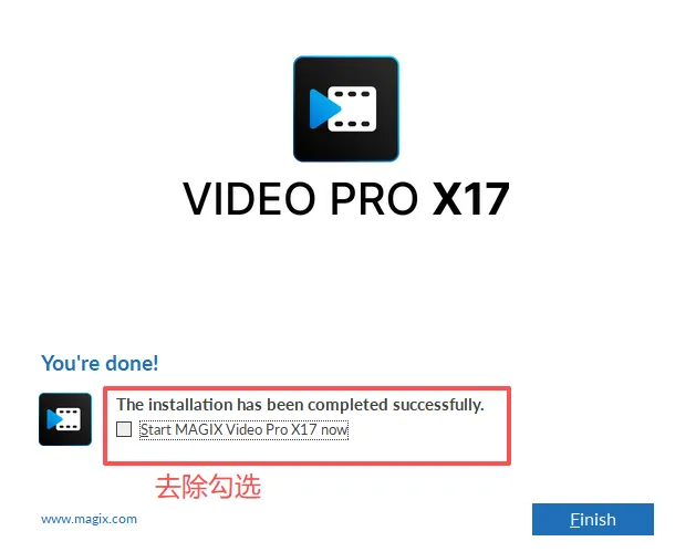 去除勾选,点击完成。先不运行软件。然后根据我的文件夹要求去设置软件。