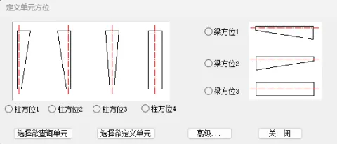 软件已经自动完成了现成单元的方位定义,除非新增杆件,一般不需要修改。定义方位具体见基本模块菜单。