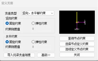 其中各个方向的平动转动可以是固定约束,也可以是弹性约束,对于抽柱门刚,软件可以通过导入托梁支座刚度按钮计算并导入支座刚度。