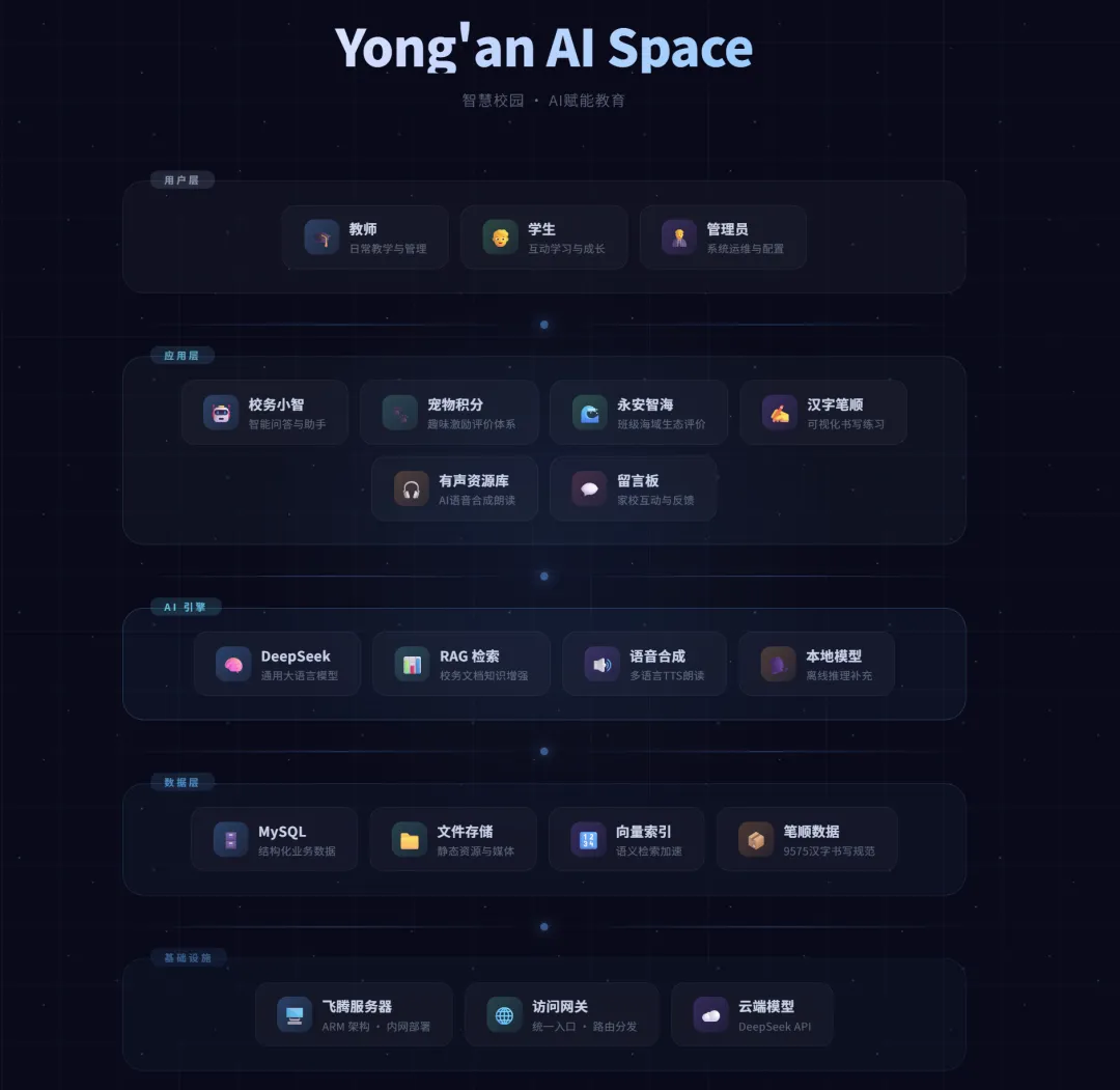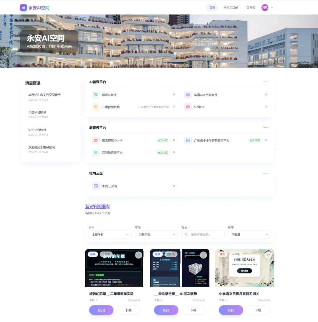 此次永安AI空间正式上线,为永安小学教学提质、评价创新、管理增效提供了强有力的数智支撑。未来,学校将持续对永安AI空间开展功能更新、体验优化与资源扩充,同步组建AI应用开发教师团队,凝聚全校教师力量共同完善平台功能、丰富教学资源。学校将以永安AI空间为核心载体,持续深化人工智能与教育教学、德育管理、校本课程的深度融合,全力打造区级“AI+课堂”示范样本,以迭代升级的智慧教育平台,赋能学校育人质量全面提升。