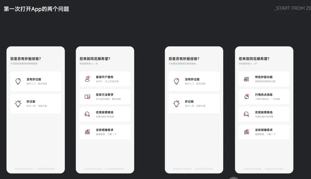 同花顺:新用户第一次进App,它不急着推股票,而是先抛两个选择题:
