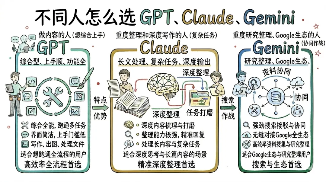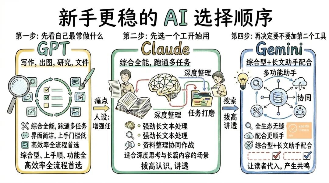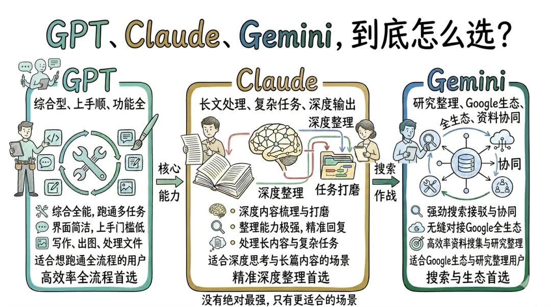 “我现在想认真用 AI,但 GPT、Claude、Gemini 到底该怎么选?”