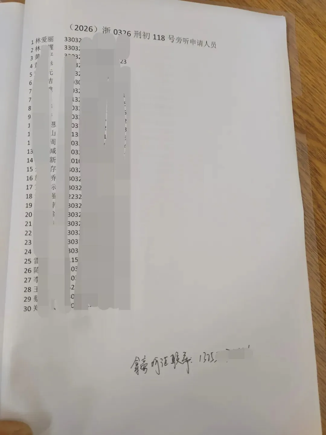庭前会议时,法官让提交申请旁听名单,昨日我们提交了家属及亲友等参与旁听的名单(名单中大部分为当事人近亲属,另有部分为长期关心黄益梓的教会教友,虽非血缘亲属,但彼此互助情深,形同亲人)。