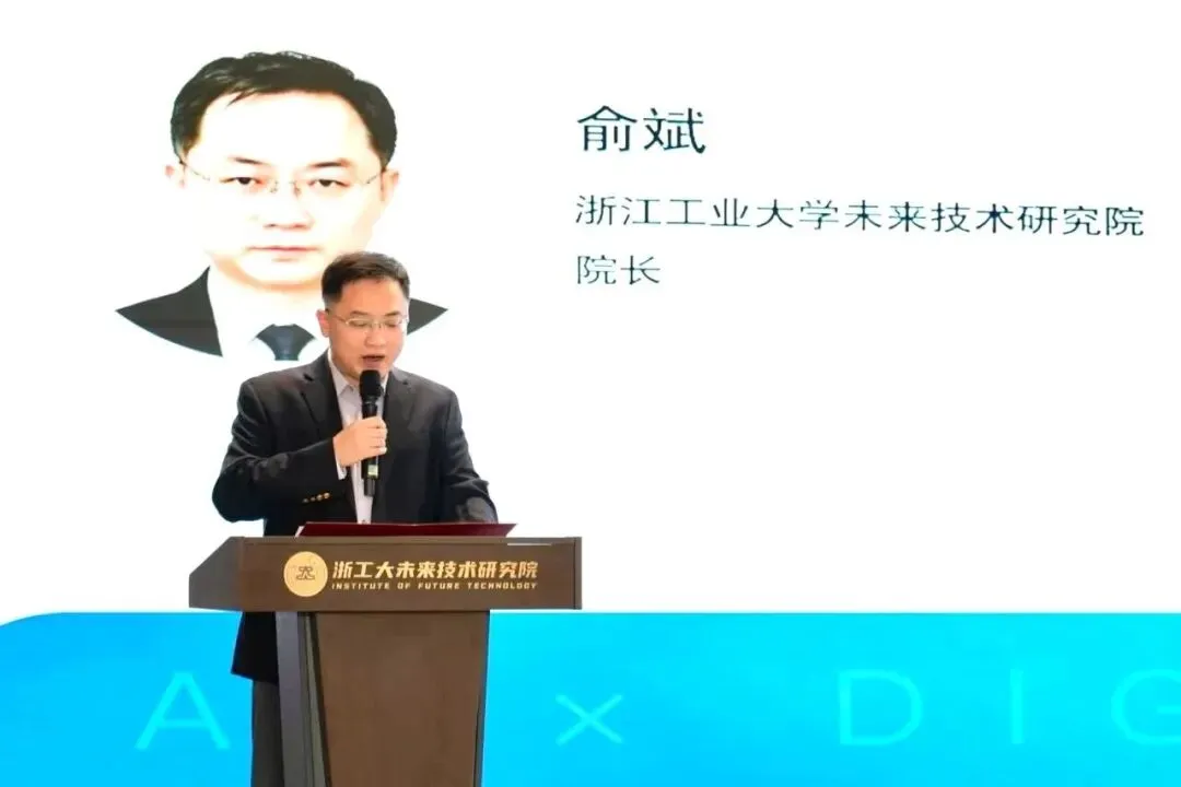 论坛伊始,我院院长俞斌致欢迎辞。他表示,数字孪生已被列入国家 “十四五” 数字经济发展核心引擎,成为推动产业高质量发展的重要支撑。作为浙江工业大学推动科研落地、链接产业需求的核心平台,我院依托学校在数字信息、人工智能领域的深厚科研积淀与人才储备,以“高层次人才引育、高水平科技研发、高质量产业集聚”为核心方向,在AI数字孪生技术研发与产业应用领域已形成成熟基础,将结合全省最新政策导向,从“专项资金扶持、公共服务平台认定、人才培养支持”三大维度,为企业数字化转型提供支持、搭建桥梁,切实打通“创新链、产业链、人才链”的融合通道。