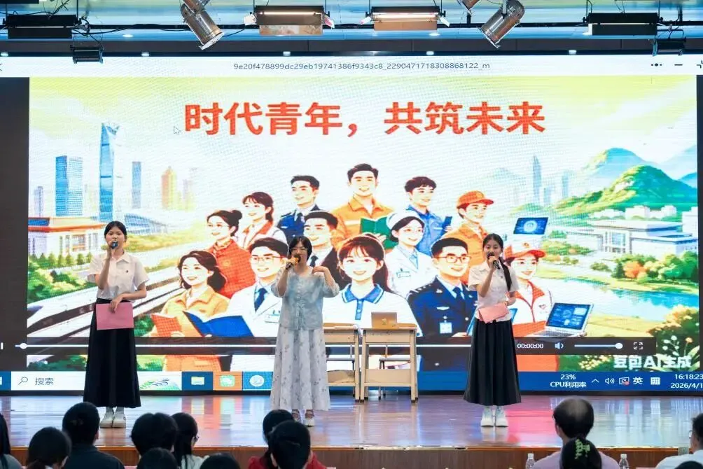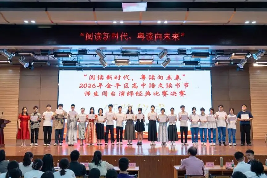 近日,在汕头市金平区教师发展中心主办的“阅读新时代,粤读向未来”2026年高中语文读书节师生同台演绎经典比赛中,我校师生共创的原创话剧《AI问“仁”,青年致远》凭借生动的创意、流畅的演绎与深刻的时代思考,荣获二等奖。此次获奖,是我校积极响应区域文化建设号召、深入践行新课标理念、推动经典阅读创新性转化的可喜成果。
