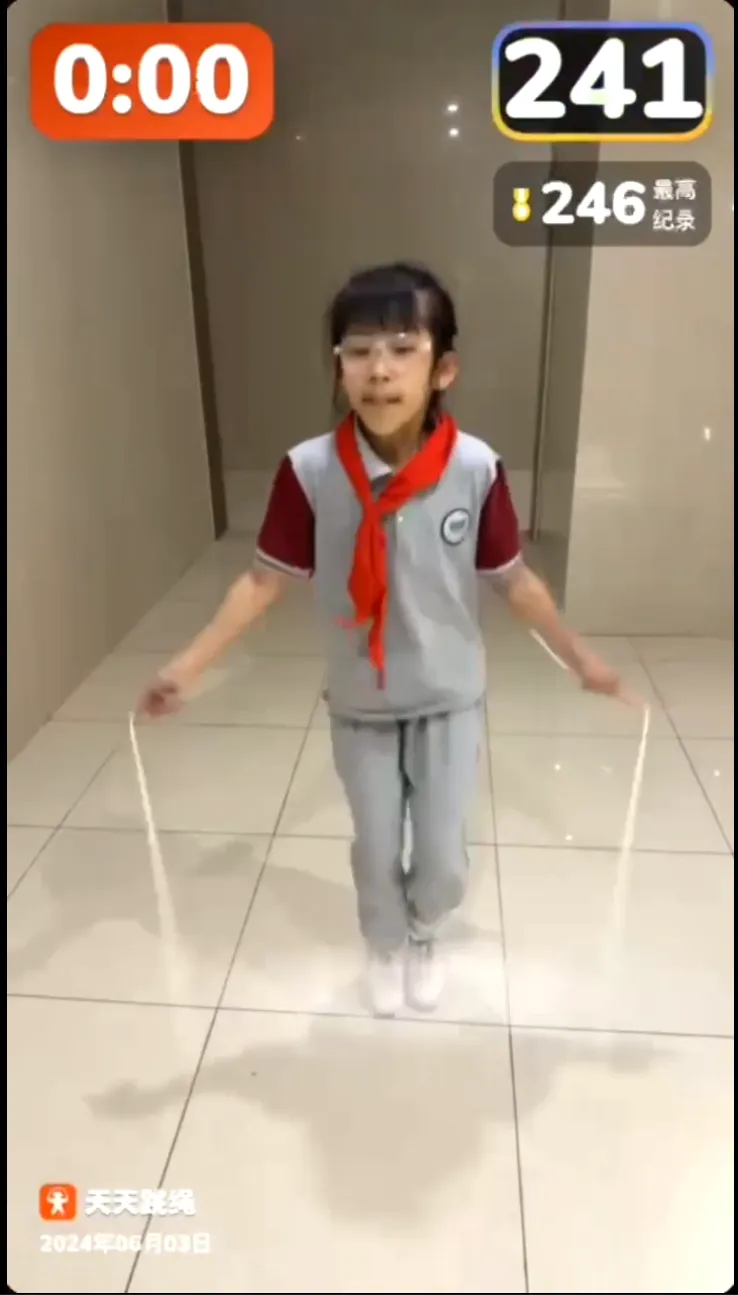此外,我校体育学科数字化应用成效突出:常态化推广 “天天跳绳” 运动软件,覆盖居家体能训练、趣味体育打卡,在小学低、中年级学生中普及率极高。经过数年坚持,三、四年级学生跳绳能力、体能素质显著提升,双飞等技巧掌握率大幅提高,课间自主运动氛围浓厚。