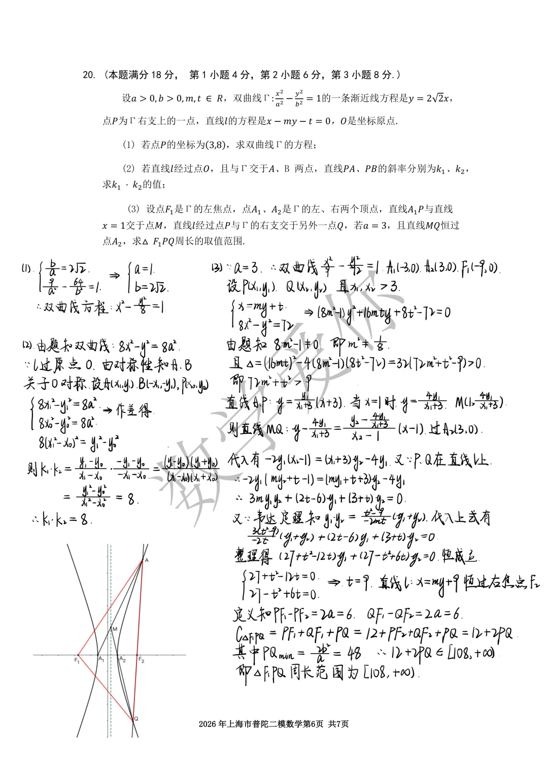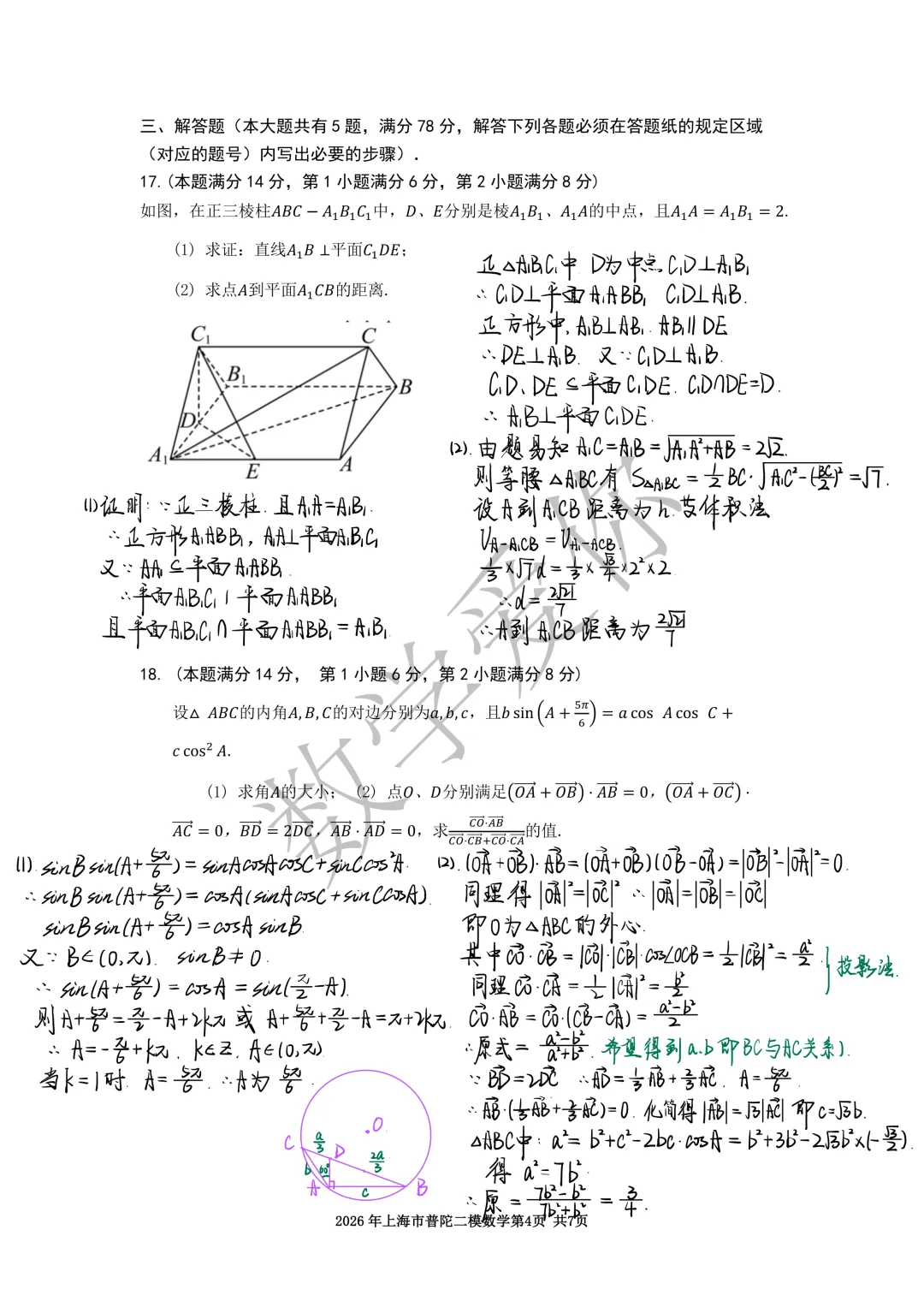 2026普陀区高三二模数学(word版+手写解析) 如需获得word版,仅需给公众号后台留言 【26普陀二模】(框内文字)即可 (可以直接复制框内文字去留言自动获取,其他留言都不会触发自动回复) 如遇链接失效,请留言