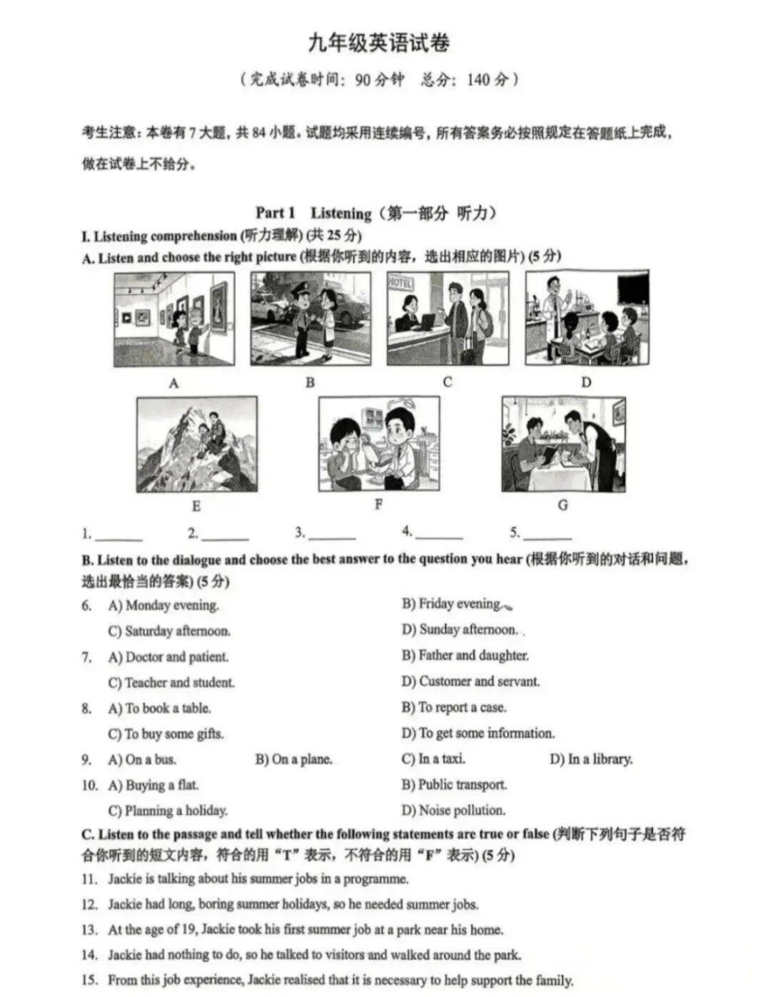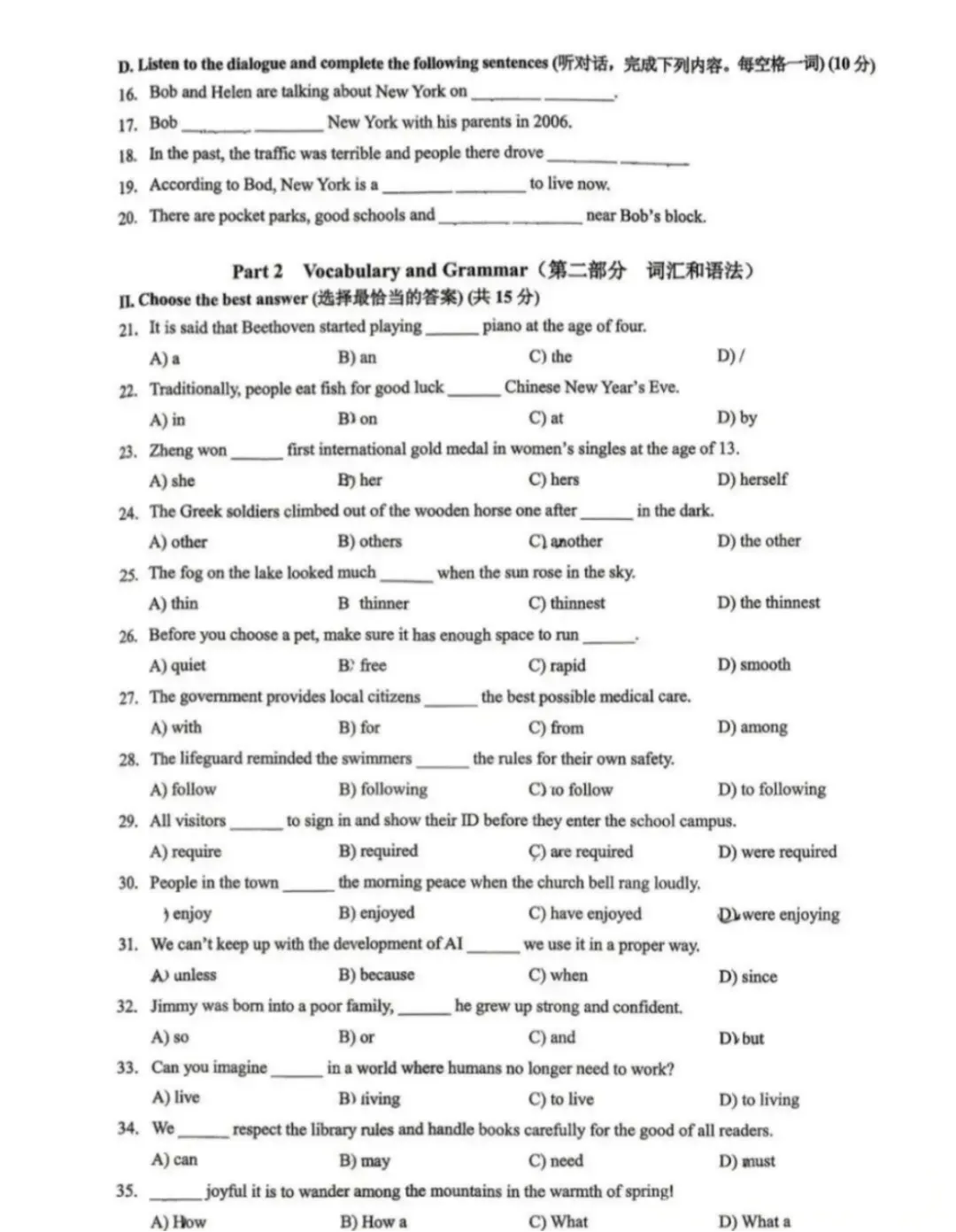 II. Choose the best answer(共15分)