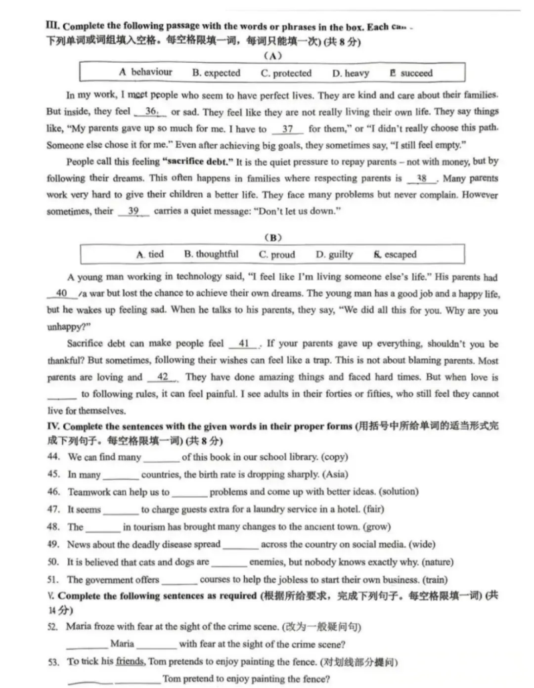 V. Complete the sentences as required(共14分)