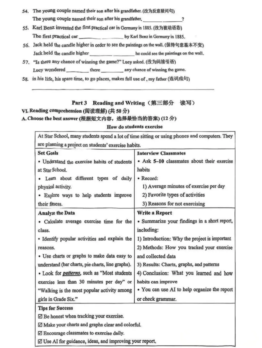 Part 3 Reading and Writing(第三部分 读写)